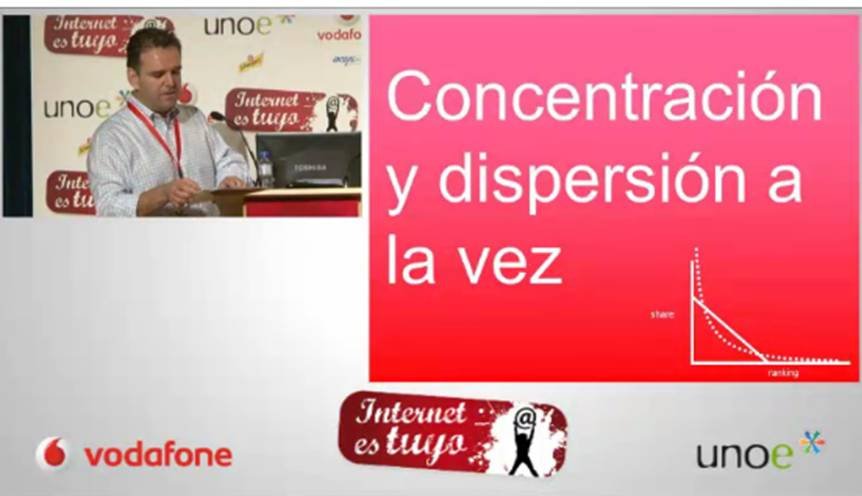 5. Concentración y dispersión a la vez. Mucha gente piensa que la larga cola significa que cada vez hay más distribución y más oferta y que los líderes son menos líderes, pero lo que ocurre es que los líderes son cada vez más líderes, y lo que hay es una grandísima dispersión del resto. Desafío: cómo mantener este espíritu democrático en un mundo en el que los bombazos son bombazos globales, algo que antes era casi imposible (ejemplo Lady Gaga).