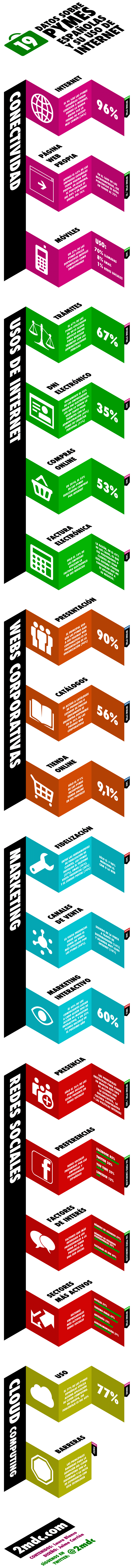 Los chicos de 2mdc han recopilado los datos más relevantes sobre las TIC y las pymes españolas que se han ido publicando desde diferentes fuentes para realizar una infografía, y este es el resultado: (haz doble clic en la imagen para verla ampliada o accede desde aquí 19 datos sobre pymes españoles y su uso de internet)
