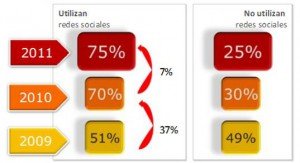 - LinkedIn presenta un gran salto también: por primera vez en el 2011 aparece reconocida espontáneamente como una red social y el porcentaje de uso se ha duplicado hasta alcanzar el 11% (5% en el 2010).