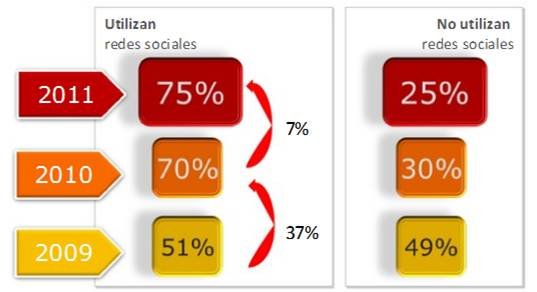- Twitter sigue creciendo: el 2010 registraba un 18% de uso que este año se vio aumentado hasta el 34%.