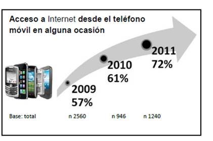 Aumento de la navegación en movilidad. El acceso a Internet en el móvil aumenta un 16% respecto al año anterior.