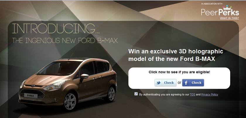 Pero el caso más reciente, que aún no está recogido en este informe, es el de Ford, la primera marca global en lanzar una campaña a nivel europeo con PeerPerks, plataforma que premia a la gente por ser social online. Además tiene la particularidad de ser la primera campaña de PeerPerks que se realiza en España.
