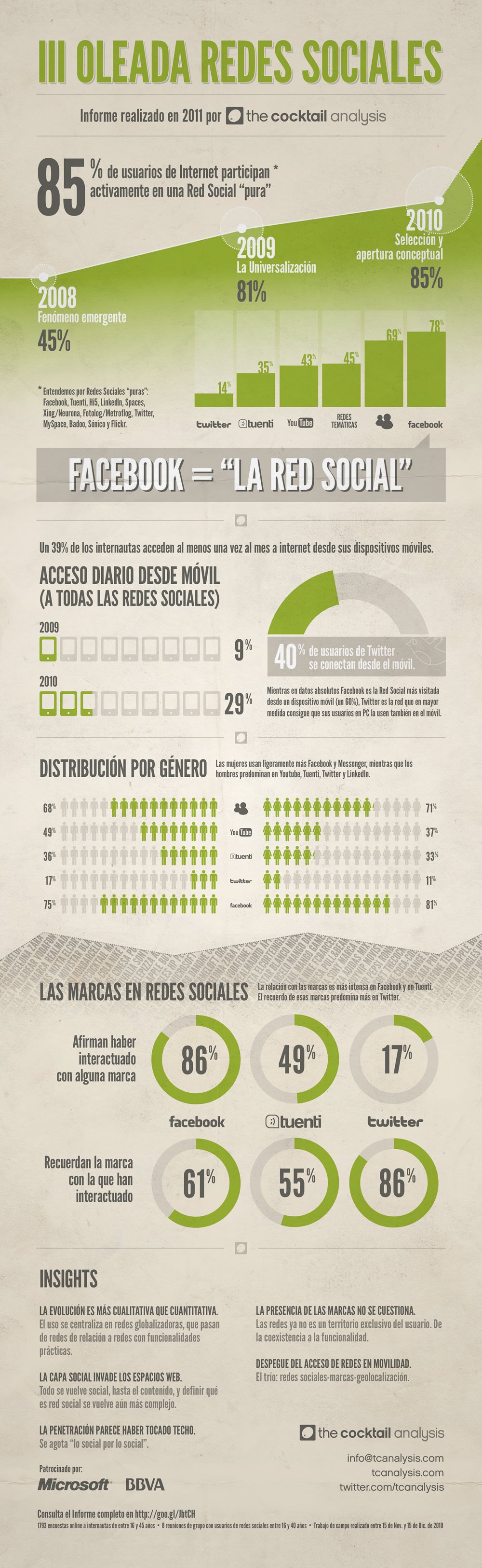 Excelente infografía del uso de las redes sociales en España con los principales resultados de la Tercera Oleada del Observatorio de Redes Sociales recientemente publicado por The Cocktail Analysis.