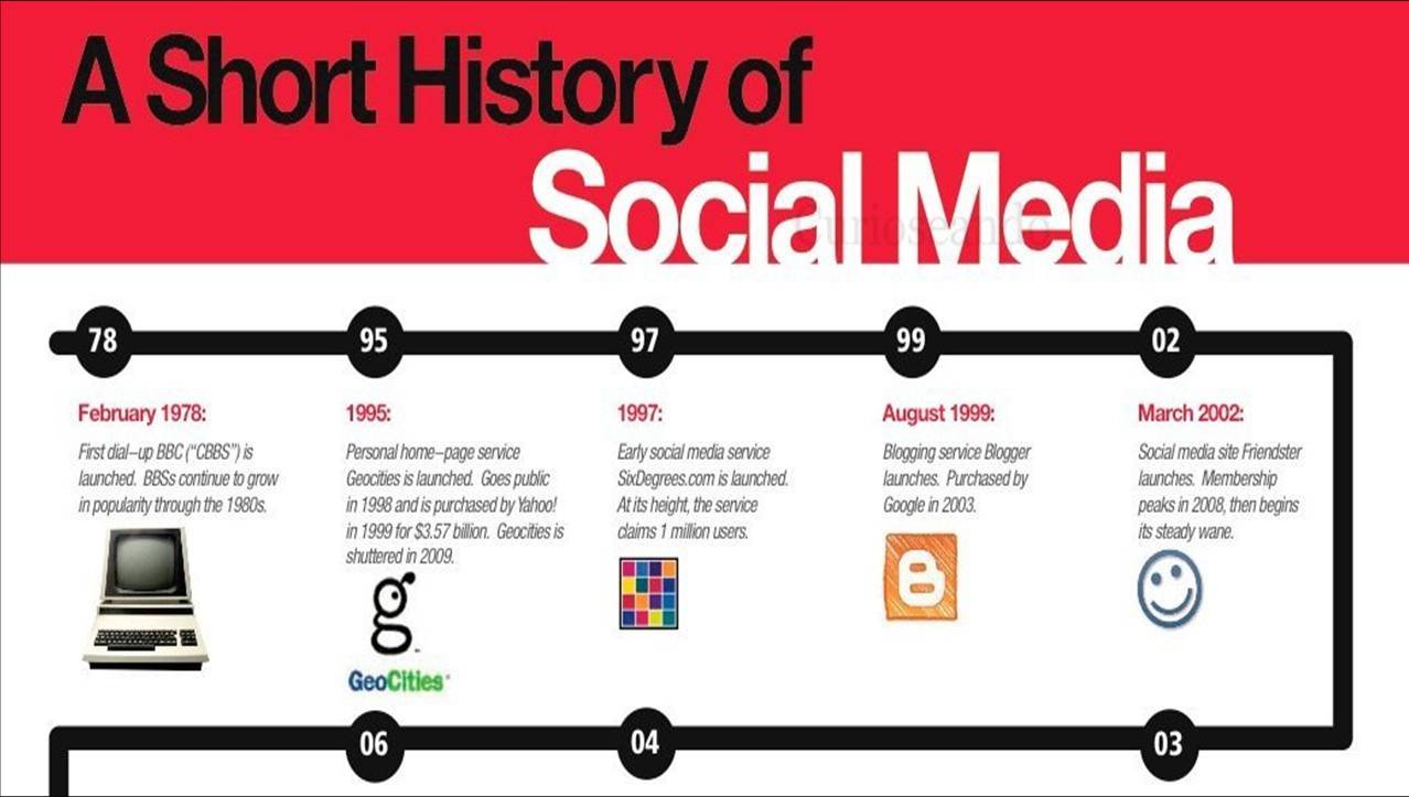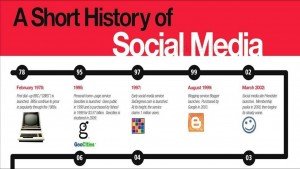 Un breve recorrido por la historia del social media en infografía realizada por Morrison Forrester. Desde el lanzamiento de SixDegrees.com en 1997, Blogger en 1999, Friendster en 2002, Linkedin y MySpace en 2003, Facebook en 2004 o Twitter en 2006. Faltaría añadir Google+ en 2011, pero esto tal vez quede para la próxima actualización.